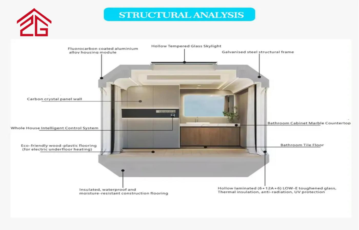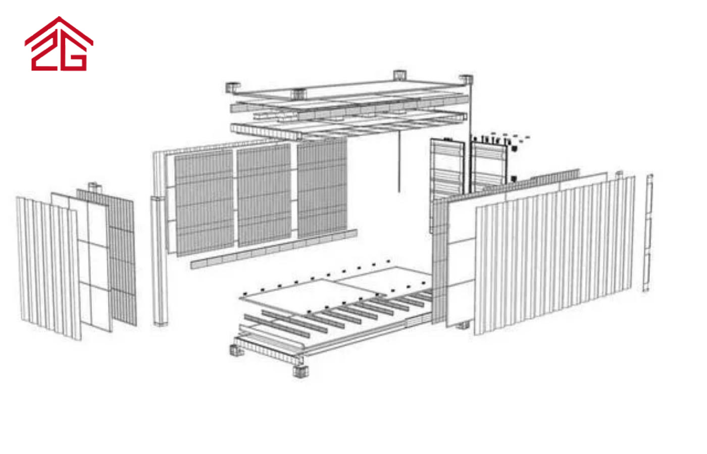 Dach und Wand: 0,5 mm Eisenblech, 50 mm EPS-Isolierschicht
