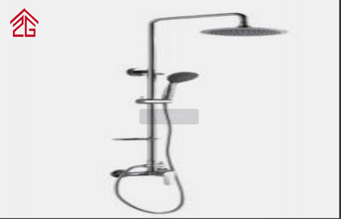Badezimmer: Dusche, Toilette, Waschbecken, Spiegel, Warm- und Kaltwasserhahn, Keramikfliesen